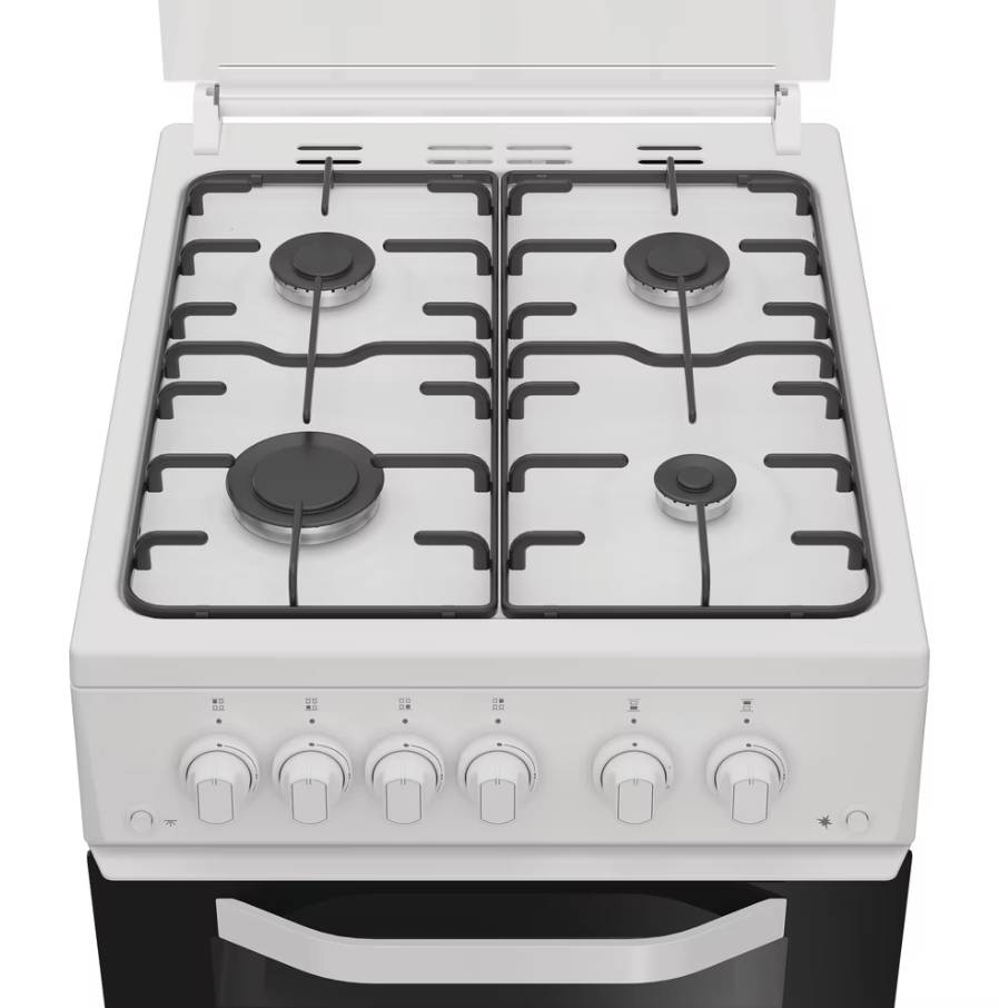 The Hotpoint HTG5GCW gas twin cooker combines practical design with dependable performance, making it a great addition to any kitchen. Finished in global white, this freestanding 50cm cooker is ideal for everyday cooking, from family favourites to more adventurous meals. With a generous main oven capacity and a separate grill cavity, it offers flexibility and convenience in a compact footprint.