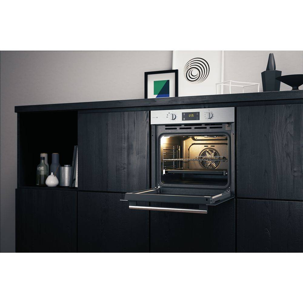 The Indesit IDD6340BL Built-in Double Oven comes in a sleek black finish and benefits from 74L of cooking space in the main cavity. The 42L capacity top oven also benefits from an integrated twin variable grill. The IDD6340BL double oven also benefits from its own rack and tray set and enamel liners to provide an easy clean surface for food spits and fat.