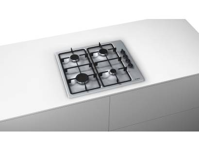 The Bosch PBP6B5B60 Gas Hob is a 60cm wide, 4 burner gas hob. The model benefits from side-mounted controls and continuous cast-iron finish pan supports for maximum stability and is finished in an elegant stainless-steel design.