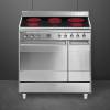 The Smeg SUK92CMX9 - 90cm Concert Ceramic Range Cooker is a 90cm wide electric cooker with a double oven and ceramic hob with 5 radiant 'High-Light zones’, including 2 dual. Finished in stainless steel, the Smeg SUK92CMX9 benefits from an AA energy efficiency rating.