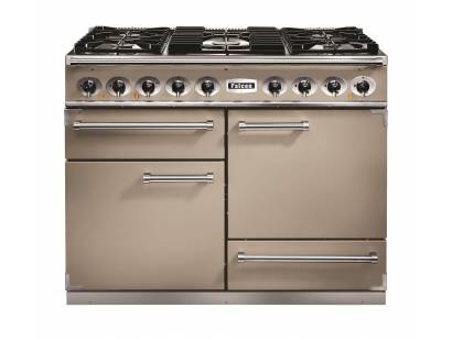 The Falcon F1092DXDFFN/NM - 1092 Deluxe Dual Fuel Fawn/Nickel Range Cooker 115420 is a favourite in kitchens all over the UK due to its stylish design, professional build quality and durability. This 110cm wide dual fuel range cooker comes with lots of great features, too. Alongside a superior roll-out grill, there is a large multifunction and fan oven, a five burner gas hob with wok burner, heavy-duty control knobs, storage drawer and stainless steel side panels. The Falcon 115420 is the latest colour in the Deluxe range and comes with a generous 3 year warranty and A energy efficiency rating.