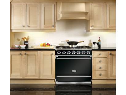 Whether using the full or divided oven, the multifunction oven benefits from seven functions - Base heat, Browning, Conventional, Defrost, Fan assisted, Fanned, Fanned grill. This oven also comes with two large heavy-duty shelves for single cavity and three shelves for when the E.S.P is in use. The stainless steel hotplate has a matt finish and benefits from five gas burners including a 5kW central burner and comes with heavy-duty pan supports and flame safety devices. The Falcon F900SDFBLCMEU Black Chrome Range Cooker has a large storage drawer for storing oven trays and other cooking utensils when not in use. The Falcon 900 Single Cavity range cooker is A rated for efficiency.