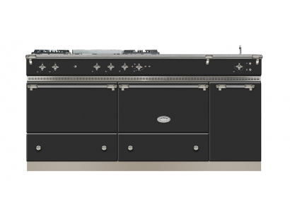 The Lacanche - 180cm Belmont Classic Dual Fuel Range Cooker boasts two large ovens which can be specified as gas, static electric or convection (fan). The electric oven comes with a grill and there is an additional 79-litre simmer oven that can also be specified as a 65-litre dual function static/convection electric oven and grill. The Belmont Classic Cooker comes with a choice of three hobs (two gas and one induction) and space for three additional optional integrated hob elements such as an electric plancha, additional burners, chargrill, multi cooker, fryer and induction plates.The Belmont Dual Fuel range cooker can be ordered for natural or LPG (bottled) gas or all electric.