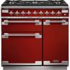 The Rangemaster ELS90DFFRD - 90cm Elise Dual Fuel Cherry Red Brushed Chrome Range Cooker 108420 features a distinctly continental design with its stylish controls, coordinating brushed chrome trim and wide array of colours to suit all tastes. The Rangemaster 108420 boasts two A energy rated ovens, a Handyrack, catalytic liners, a five burner gas hob, dual circuit grill, wok cradle and is complete with a 2 year warranty.