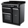 The Rangemaster Estel Deluxe 90 Dual Fuel Range Cooker combines classic design elements with modern performance, making it a standout choice for both traditional and contemporary kitchens. With its timeless black glass finish, signature chamfered edges, and ergonomic control dials, this cooker brings a refined yet nostalgic aesthetic to your home.
