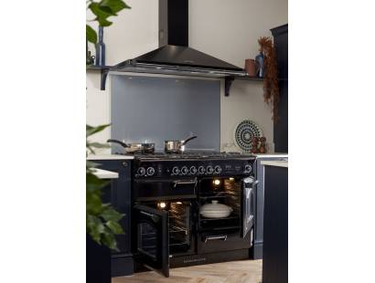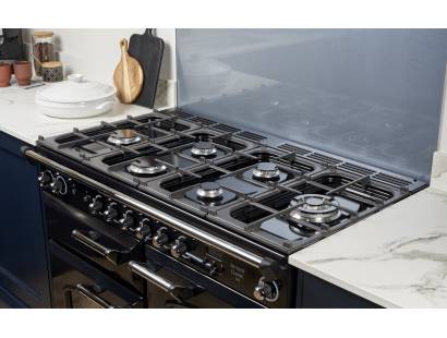 The Rangemaster INF100DFFBL Infusion Dual Fuel Black Range Cooker comes with two spacious fans ovens and catalytic liners which absorb fat and steam during cooking, ensuring that the oven is kept as clean as possible with the minimum effort.