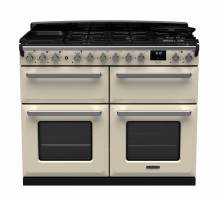 The Rangemaster CLDLB110DFPPCR/CM1 Classic Deluxe Dual Fuel Range Cooker in pale cream with chrome trim blends timeless design with professional cooking performance. At 110cm wide, it delivers...