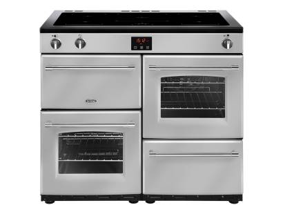 The Belling Farmhouse FH100EiSIL Electric Induction Range Cooker features a five zone induction hob with Link+, a variable rate electric grill, defrost and slow cook functions, a Maxi-Clock™ programmer and storage compartment. The Belling FH100EiSIl Silver Range Cooker benefits from an A/A energy rating.