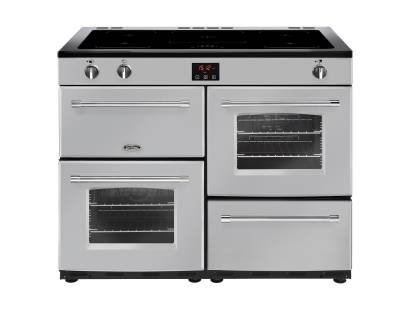 The Belling Farmhouse FH110EiSIL Electric Induction Range Cooker features a five zone induction hob with Link+, a variable rate electric grill, defrost and slow cook functions, a Maxi-Clock™ programmer and storage compartment. The main oven in the Belling FH110EiSIL Silver Range Cooker has a 71 litre capacity which benefits from an A energy rating.
