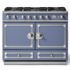A large, full-length storage drawer can accommodate dishes, trays and other cooking accessories. The CornuFé satin chrome Paris Blue range also comes with a range of useful accessories, including simmering and griddle plates.