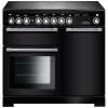 The Rangemaster EDL100EIBL/C - 90cm Encore Deluxe Electric Induction Black/Chrome Range Cooker 117340 boasts sleek contemporary looks with state-of-the-art features, including a deluxe glide-out grill with 4-way trivet, two spacious oven cavities with a telescopic shelf in the left-hand oven and a large hob space with cooking zones with hot hob indicators. The Rangemaster 117340 has two A energy rated ovens and comes with a 2 year warranty.