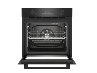 The Blomberg ROEN8201B Single Oven comes in a sleek glass finish. The oven boasts a huge 72 Litre capacity and five functions. The AeroChef technology ensures hot air is circulated throughout the cavity for even cooking results, and the touch-control LED timer is easy to use. The ROEN8201B has control knobs for a seamless finish and an easy clean, double-glazed oven door with a full glass inner door.