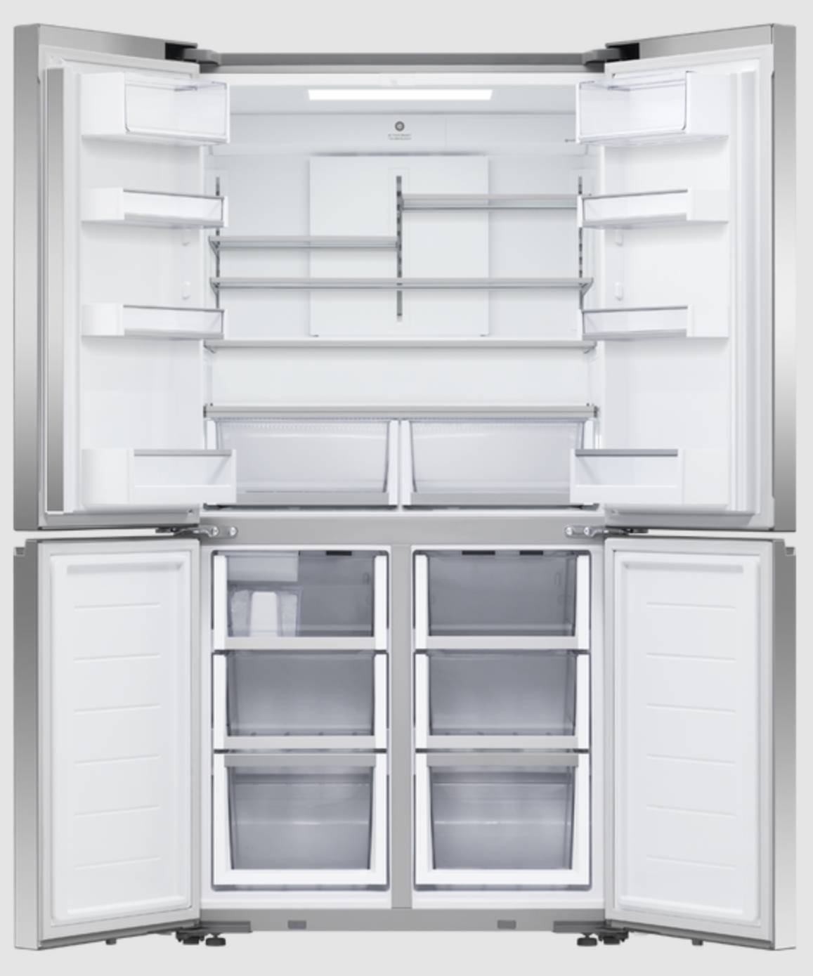 The Samsung Series 8 SpaceMax™ RF48A401EM9 French-Style Fridge Freezer in a sleek Silver finish seamlessly combines modern design with high performance for any contemporary kitchen. With SpaceMax™ technology, this fridge freezer offers extra storage capacity, accommodating up to three more bags of groceries compared to standard models, all while maintaining a compact exterior. The advanced Twin Cooling Plus™ system ensures that optimal humidity levels are maintained throughout, preserving the freshness and quality of your food for longer. The Total No Frost feature prevents ice build-up, saving you the hassle of manual defrosting and making maintenance a breeze.