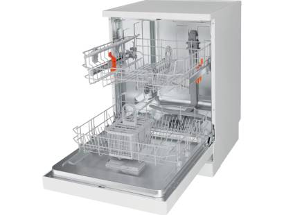 The Hotpoint H2FHL626UK Full Size Freestanding Dishwasher has exceptional, reduced water consumption and has a convenient digital countdown timer to inform you when the washing cycle is complete. It features adjustable feet for perfect stability on uneven floors and surfaces and is available in white. The Hotpoint H2FHL626UK Dishwasher has 14 place settings and has an E energy rating.