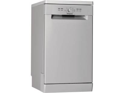 The Hotpoint HSFE1B19SUKN Slimline Dishwasher has 10 place settings, and comes with a number of programmes, including Eco, Intensive, Soak, Glass, Half load permanent and Rapid.