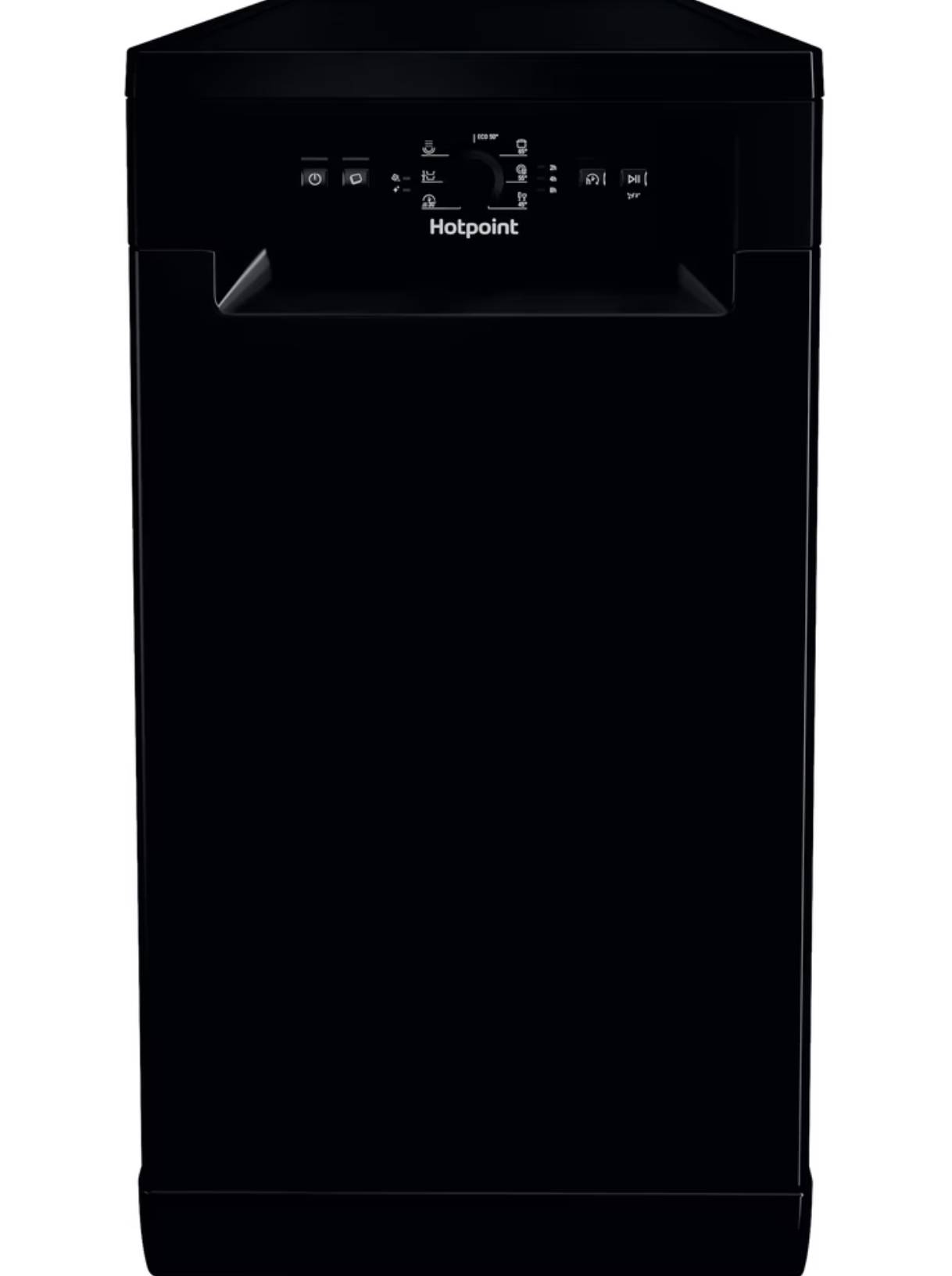 The Indesit DF9E1B10SUK Slimline Dishwasher fits into a 45cm space, but can still handle up to washing 9 place settings. It features 6 programmes including Rapid 40 perfect when you're short on time. With the Delay Start option, you can control the start time of your cleaning. The Hotpoint DF9E1B10SUK Silver Slimline Dishwasher features a stainless steel tub and an Auto Intensive programme.