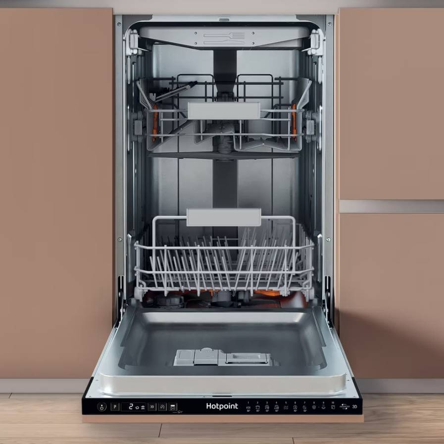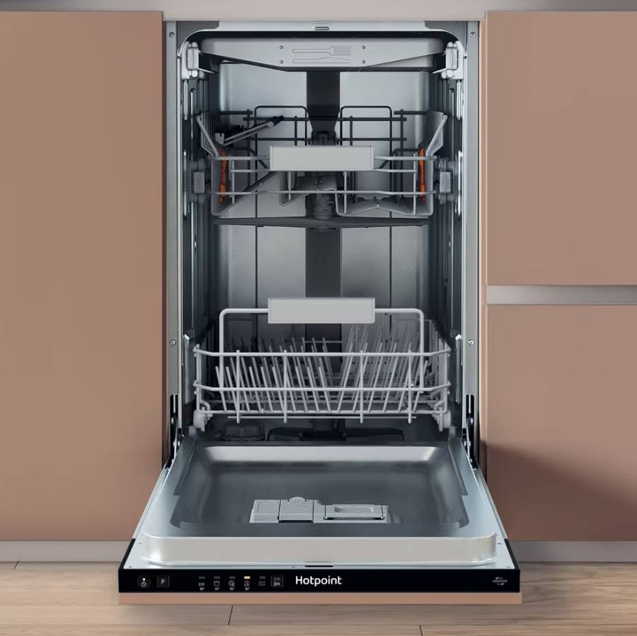 The Hotpoint HP6IC11BS7LA0UK slimline built in dishwasher is the ideal solution for kitchens where space is limited but performance still matters. Measuring just 45cm wide, it fits neatly into compact layouts while offering enough capacity for 11 place settings. Designed for busy households, it combines powerful cleaning technology with intelligent drying and flexible loading to deliver excellent results every day.