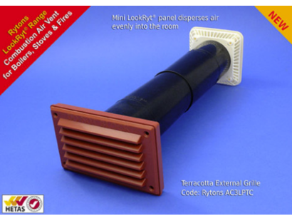 The Rytons AC3LPTC Mini Lookryt Aircore comes with a Terracotta Outer Grille and is a retro-fitted combustion air vent for boilers, stoves and fires. The Reytons AC10LPTC is HETAS approved for use with solid fuel appliances.