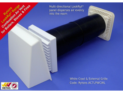 The Rytons Cowled and Baffled Lookryt Aircore AC7LPCWLWH is a retro-fitted combustion air vent for boilers, stoves and fires.
