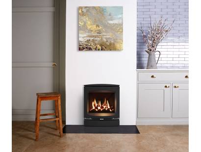 The Logic HE features a glass front and boasts the highest efficiency of all the Logic Fires at up to 89%. The HE offers a choice of either logs, coal or white stone or upgradeable coloured glass bead fuel effects. With both conventional and balanced flue models, the HE is even suitable for homes without a chimney!