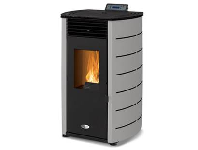 The Stanley Solis K100PS with attractive Curved Grey Side Panels - K100SPGY is all that is good about Pellet Stoves: ultra high efficiency, reduced carbon emissions, cleaner, controllable and autonomy with lots of capacity. At just 910mm high and 558mm wide this Stanley Pellet Stove is highly compact for its 8kW output. The Stanley Solis K100SPGY Pellet Stove is finished in a modern Enameled Grey finish and comes complete with a Remote Control and a full 1 Year Warranty (2 Years for the external casings & enamel finishes).