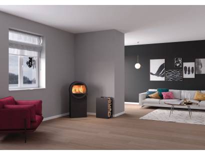 The Nordpeis ME Wood Burning Stove features a circular front and cylindrical body to create a unique stove. The Nordpeis ME Stove comes with a pedestal with various options available, including ceiling-hung, steel log store stand, benches, or wall-mounted, with stylish clear glass stands also available.
