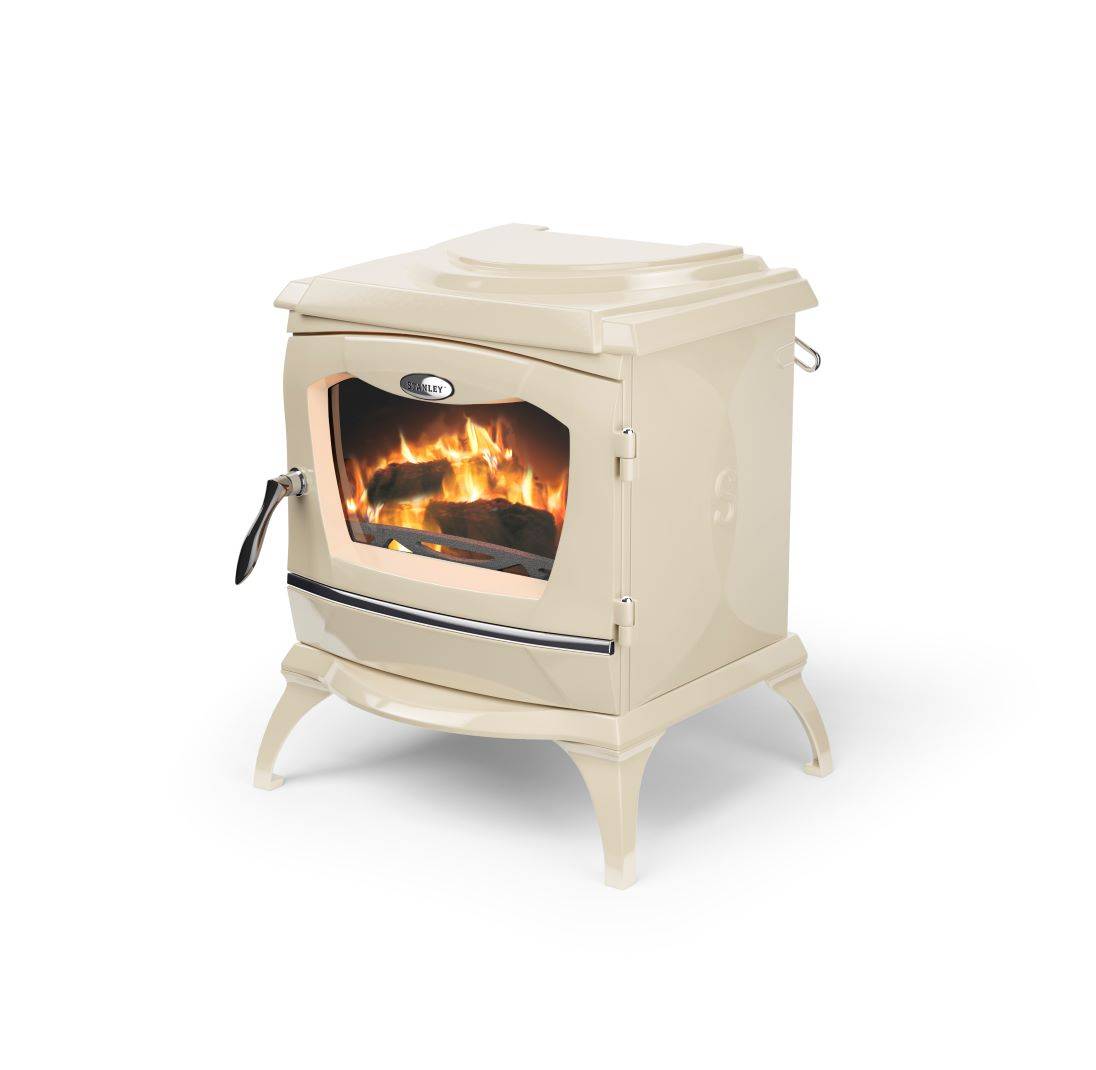 The Stanley Ardmore Solid Fuel Stovein cream provides a maximum of 9kW of heat output to the room and has a large viewing window and high chromium grates.