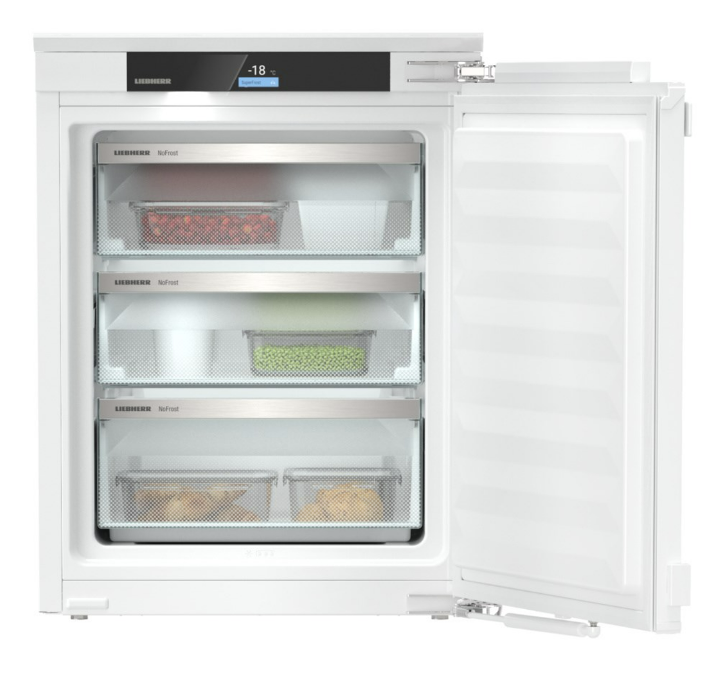 The Liebherr CNd7723 Fridge Freezer features EasyFresh and is NoFrost. It benefits from DuoCooling and EasyTwist Ice. The CNd7723 white fridge freezer has a D energy rating and comes with three freezer drawers and a Touch Display.
