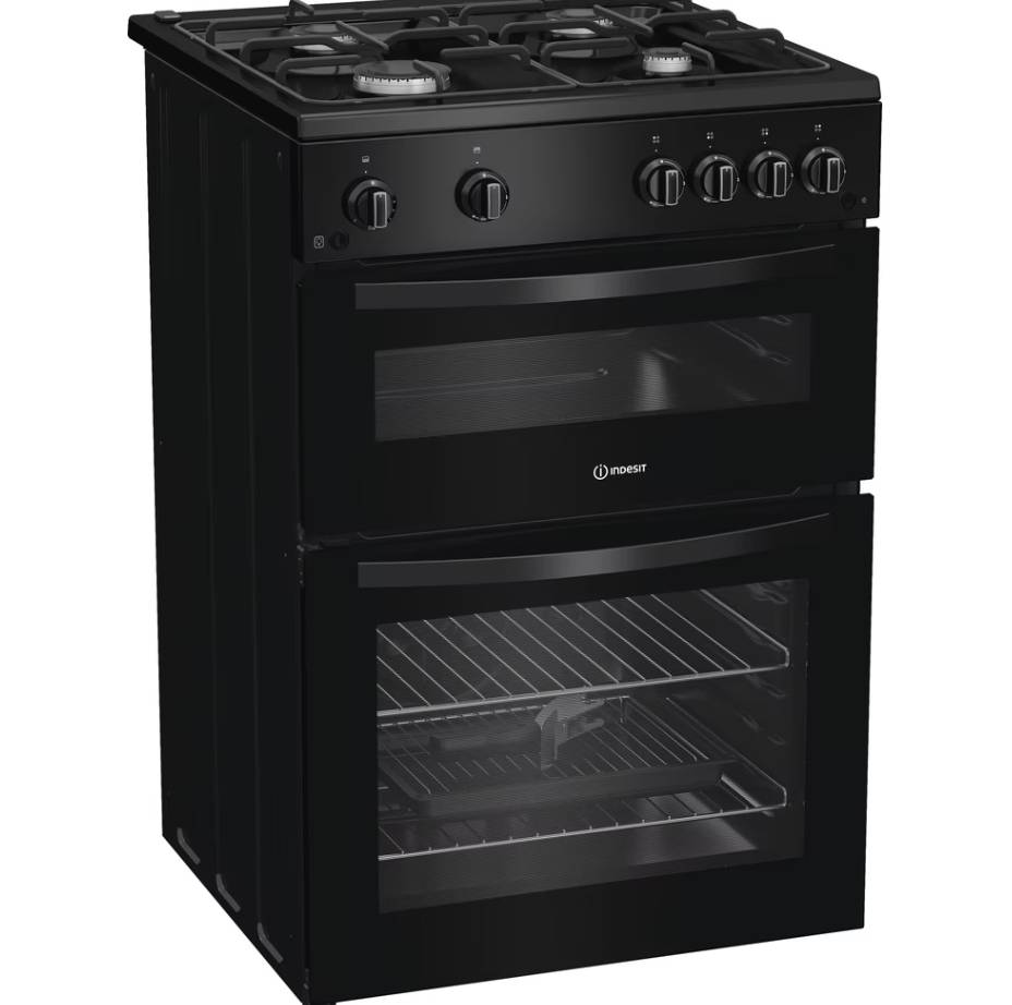 Indesit ITG6GB 60cm Gas Twin Cooker – Black (lpg kit not included)