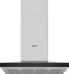Sleek, seamless and low profile the Siemens iQ300 LC67QFM50B is a 60cm wide contempory stainless steel pryamid chimney cooker coming with light up electronic control buttons.