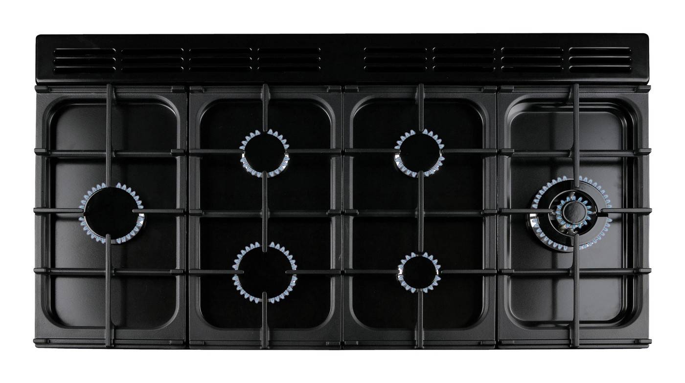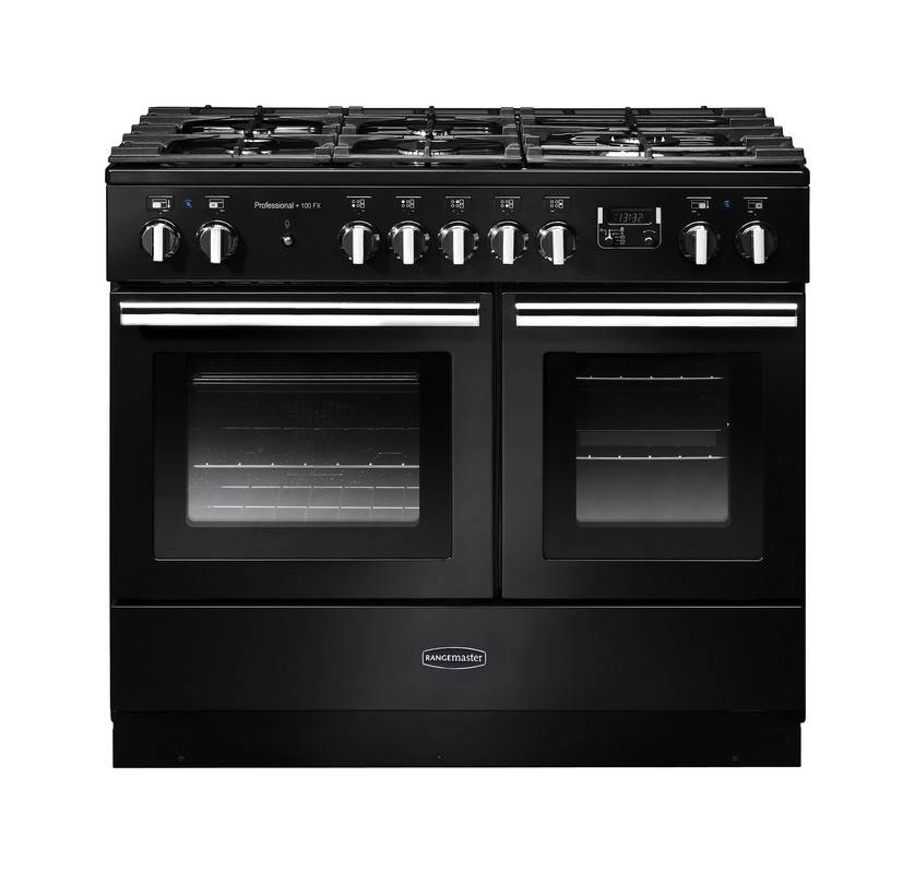 The AGA MDX90DFBLK Masterchef Deluxe Black Range Cooker features a five-burner gas hob including a large central brass burner, ideal for wok cooking or large pans. The AGA MDX90DFBLK also benefits from a glide-out grill, a multifunction oven, and a fanned oven. Complete with an A energy rating, the MDX90DFBLK 90cm black range cooker has the added reassurance of a generous five year parts and one year labour warranty.