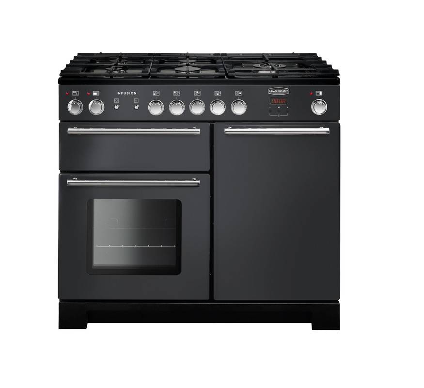 The Stanley Nua Slate 100cm Induction Range Cooker is an all-electric cooker offering flexible, energy-efficient cooking and beautiful retro styling. The Stanley Nua Slate SNE100-3ISLT boasts two large radiant ovens and a warming oven. It also comes with a grill, a cast iron hotplate, which can be set to boiling or simmering mode, and a two-zone induction hob.