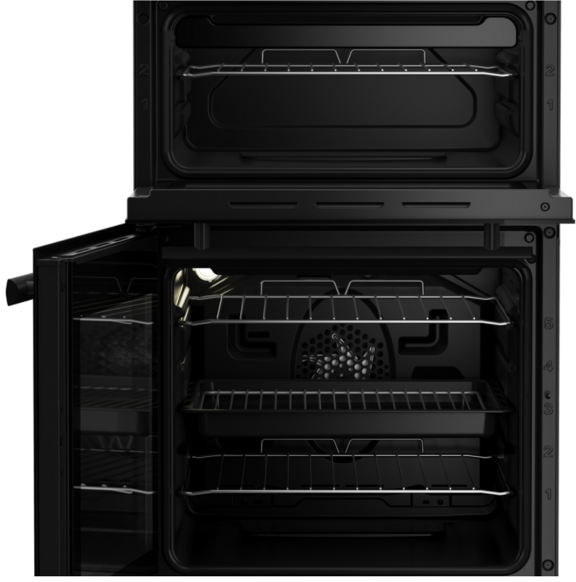 The Rangemaster PROPL100FXDFFGB/C - 100cm Professional + FX Dual Fuel Gloss Black/Chrome Range Cooker 123350 features easy-access drop-down doors with a colour matched fascia for a coordinated look. There are durable rotary controls and handles, and the easy-clean enamel multifunction ovens offer plenty of cooking space. The Rangemaster PROPL100FXDFFGB/C Range Cooker also comes with a five-burner gas hob with a wok cradle and griddle.