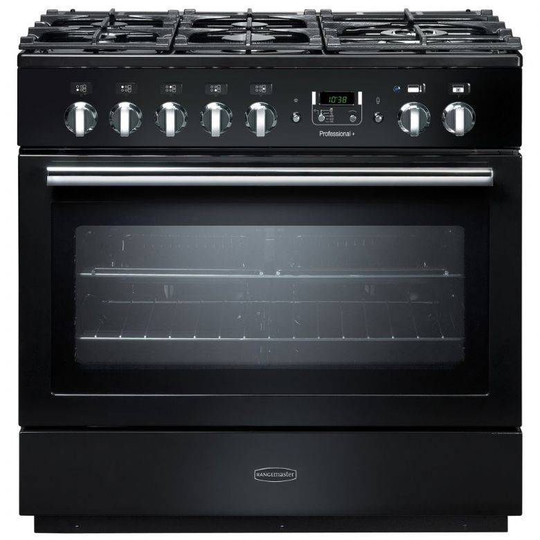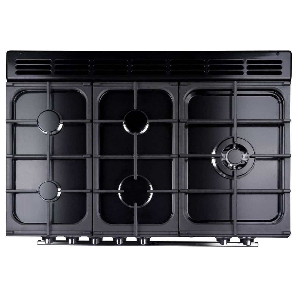 Rangemaster ELS90DFFGB - 90cm Elise Dual Fuel Gloss Black Brushed Chrome Range Cooker 108410