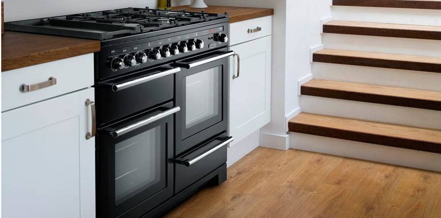 The Rangemaster CDL100DFFBL/B - 100cm Classic Deluxe Dual Fuel Black/Brass Range Cooker 115540 offers all the traditional styling you'd expect from Rangemaster with a host of innovative feature. This range cooker boasts a smooth action glide-out grill, two ovens - mulitfunction and fan, a 5 burner gas hob with Steadfast™ pan supports, a sturdy and durable wok burner, and a cast aluminium griddle. Finished in a sleek black gloss colour, the Rangemaster 115540 comes with a classic brass trim. This model also benefits from an A energy rating and 2 year warranty.