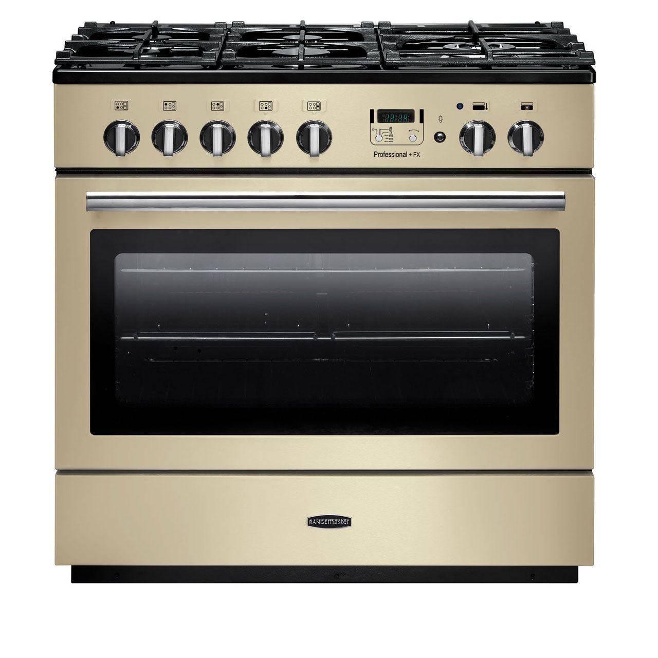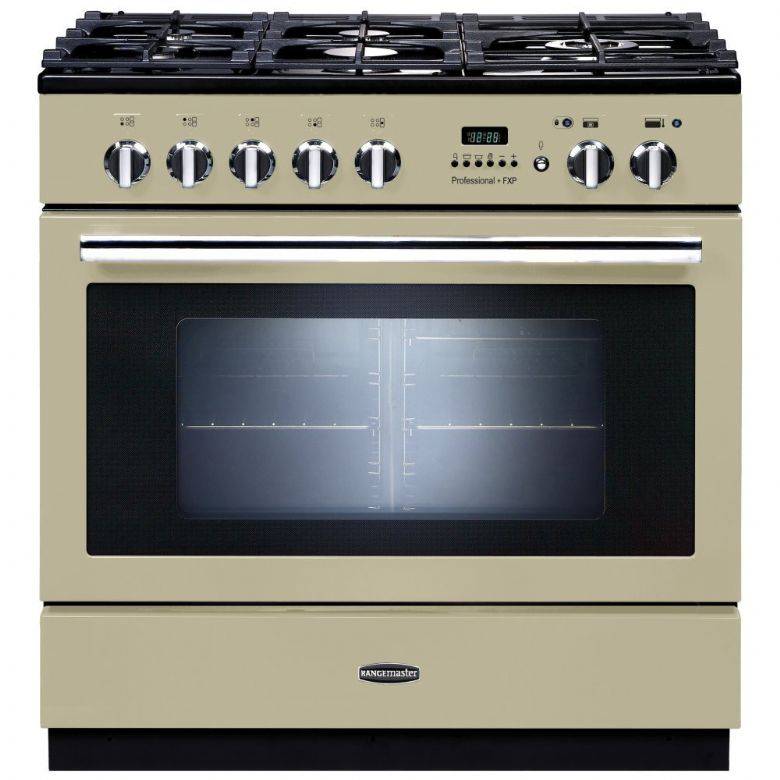 Rangemaster ELS90DFFCR - 90cm Elise Dual Fuel Cream Brushed Chrome Range Cooker 108440