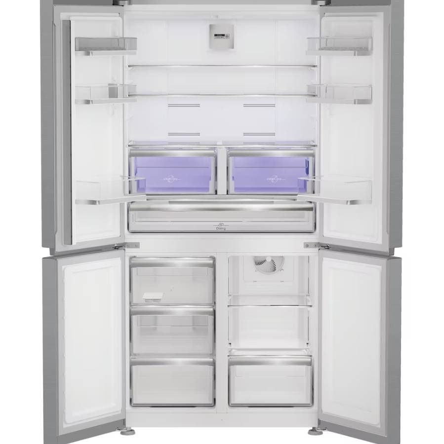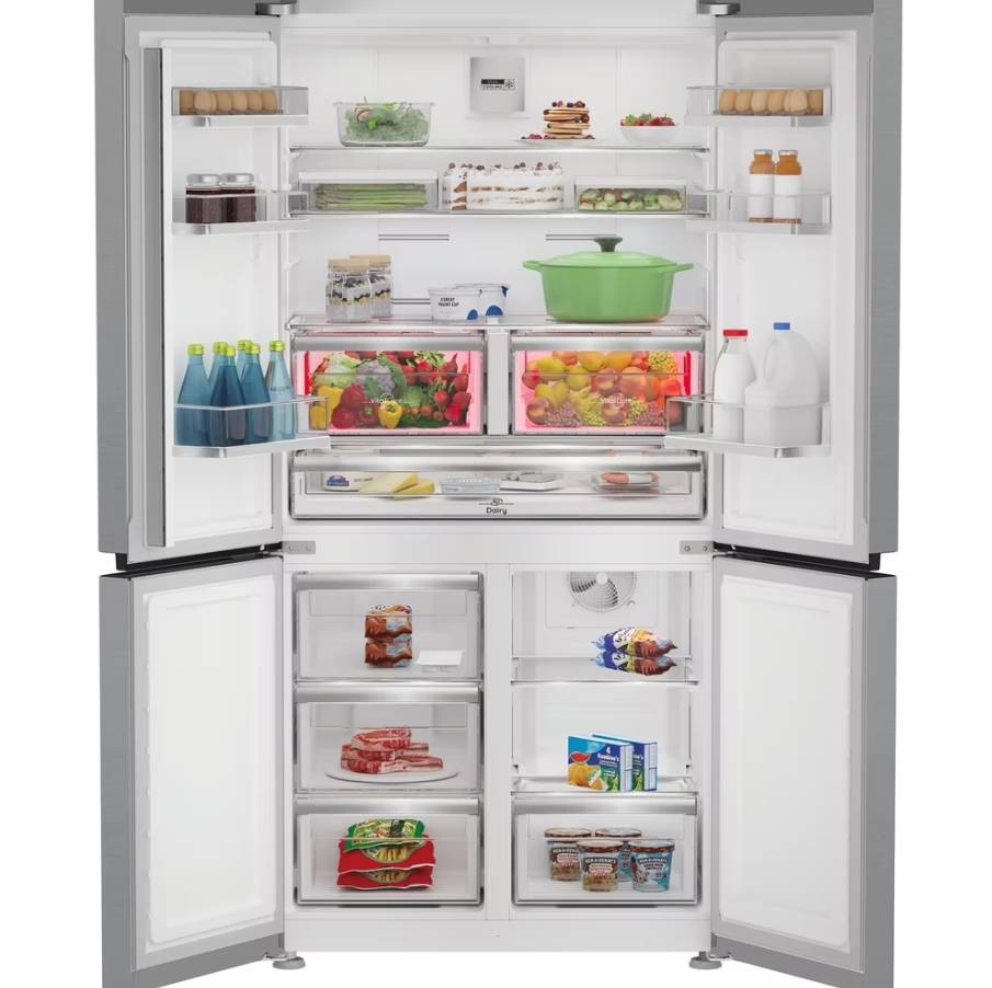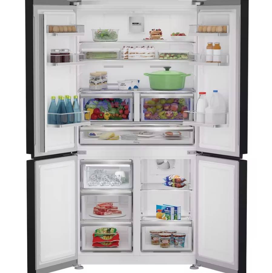 The Hotpoint HPGF6564XK4UK is a premium four door American style fridge freezer that combines striking design with advanced food preservation technology. Finished in sophisticated dark inox with a Manhattan Grey tone, it brings a bold, modern look to spacious kitchens while offering a generous 565 litre capacity. Ideal for families and those who love to entertain, it provides flexible storage and intelligent features to help keep food fresher for longer.