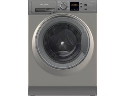 The Hotpoint NSWF946GGUK Graphite Washing Machine has a 9kg capacity and a 1400 spin speed. It features an Anti-Stain cycle that ensures the machine can tackle the most common household stains without needing to pre-treat your clothes, and the digital display allows you to select your cycles and monitor the time remaining clearly. The Hotpoint NSWF946GGUK washing machine has a rapid cycle, ideal for when you are in a rush.