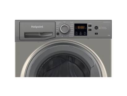 The Hotpoint NSWM1046GGUK Washing Machine has a 10kg capacity and a 1400 spin speed. It features an Anti-Stain cycle that ensures the machine can tackle the most common household stains without needing to pre-treat your clothes. It also benefits from a FullLoad 45 and is easily operated with its digital display. The NSWM1046GGUK Graphite Washing Machine has an A energy Class.