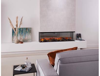 The New Forest 1600 Electric Fire can have both the left and right sides open, this setup creates the ultimate viewing feature. With the front facing option, the electric fire is fully recessed into the chimney breast, with both sides enclosed, resulting in a sleek and minimalist focal point for the room. Leaving either the left or right side of the fire open while enclosing the other creates a unique visual perspective in the corner option. Paired with a hearth-style base, it adds a decorative element, offering additional space to enhance and personalise the area around the electric fire.