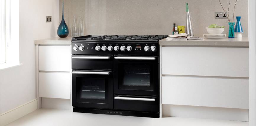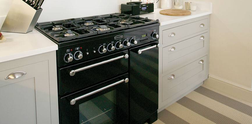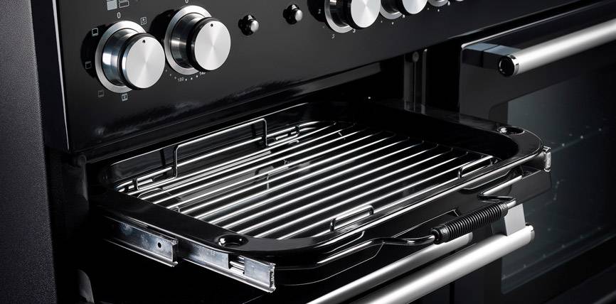 The Stoves Sterling S900DF Dual Fuel Range Cooker Black features a five burner gas hob, 31L conventional oven & grill, 54L multifunction main oven and 87L tall fanned oven.