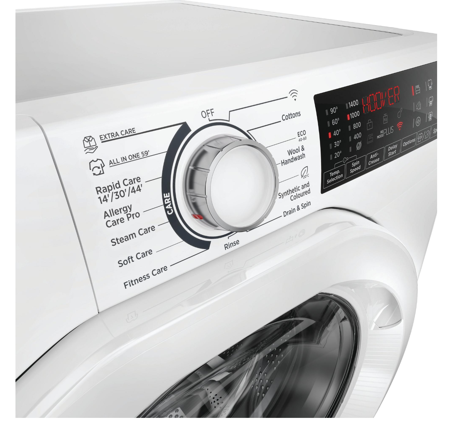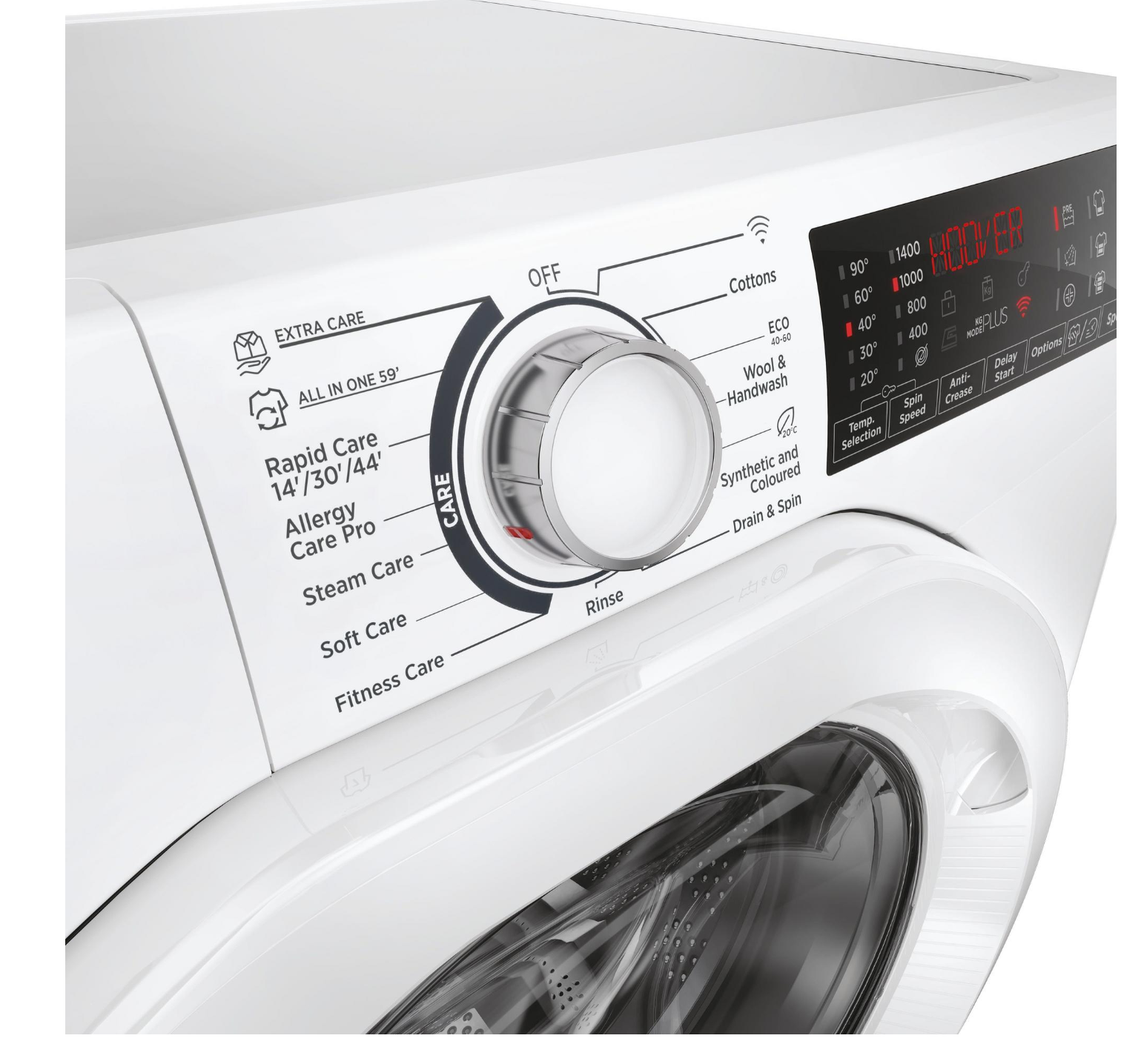 The Hoover H3WPS496TMRR6 Washing Machine features a generous 9kg load capacity, 16 programmes and 1400 spin speed. The H3WPS496TMRR6 also benefits from an All-in-One programme, Steam Function and Multiple Quick Wash cycles.