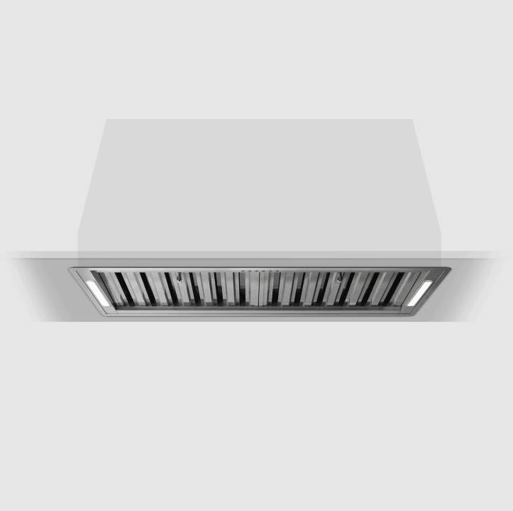 Perfect for smaller kitchen islands or compact spaces, the Easy UX features a unique concave shape with a perimeter extraction system for efficient air capture and filtration. Its integrated LED spotlights provide focused, clear lighting over your hob, while the soft-touch control panel is ergonomically placed for intuitive use.