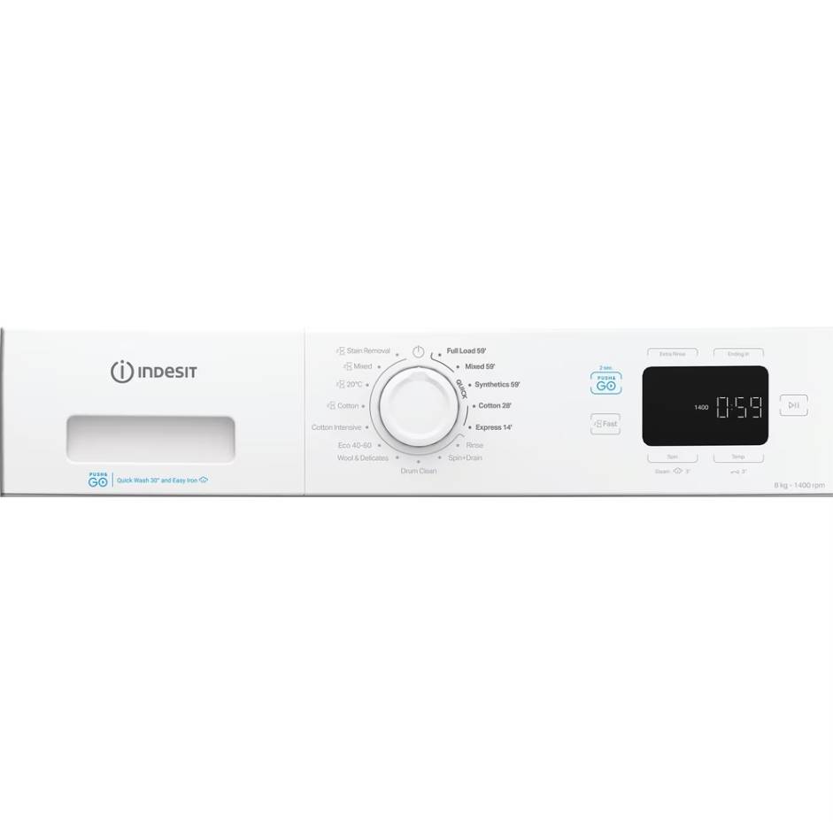 Make everyday laundry quick and simple with the Indesit IP846PUSHGOUK Push&Go washing machine. Finished in classic white, this freestanding appliance combines an 8kg capacity with powerful cleaning performance, making it ideal for busy households. Designed with convenience in mind, it delivers effective stain removal and fabric care at the touch of a button.